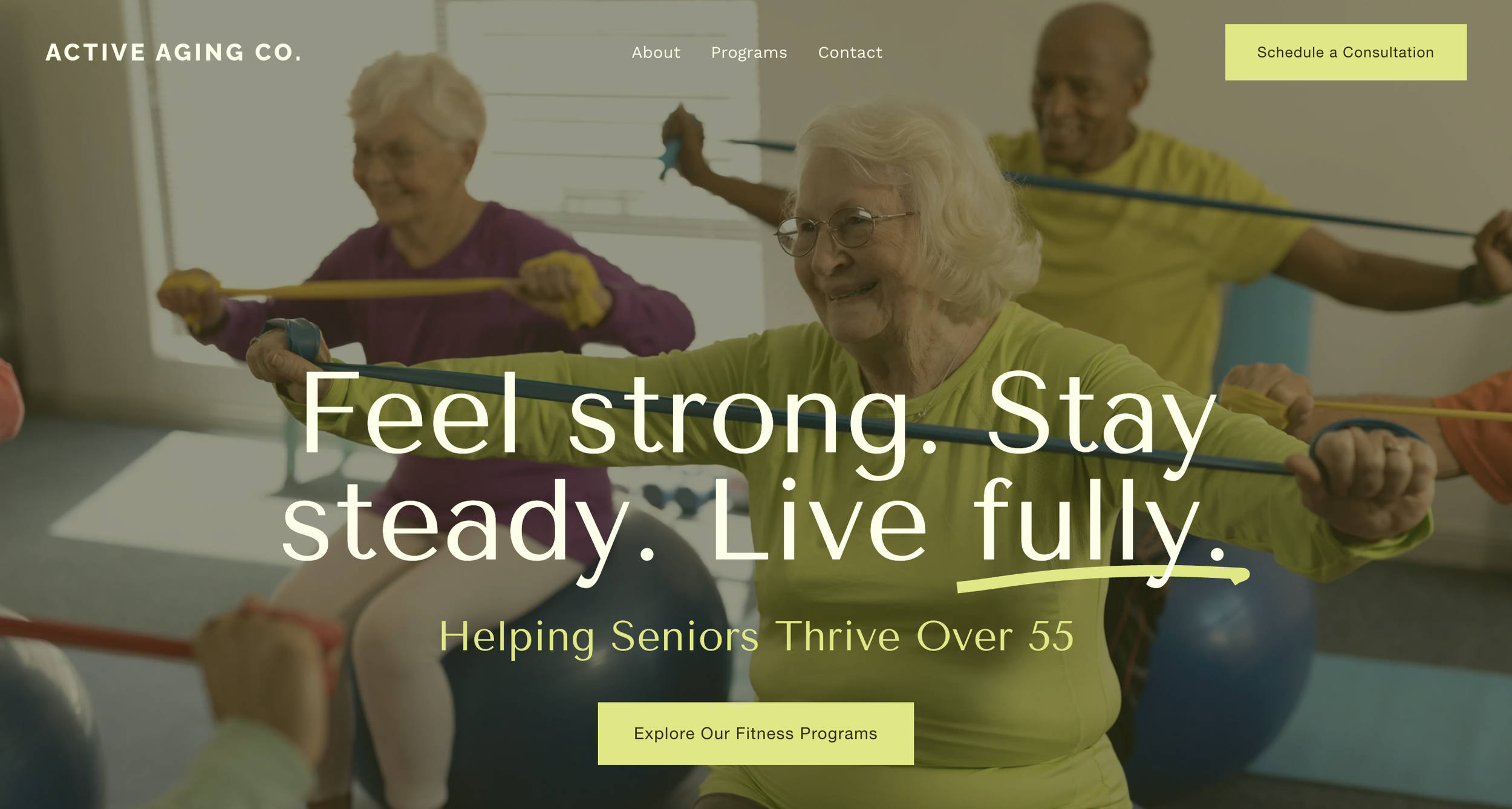 ACTIVE AGING CO: Squarespace website design, website copy, and marketing materials design & copy